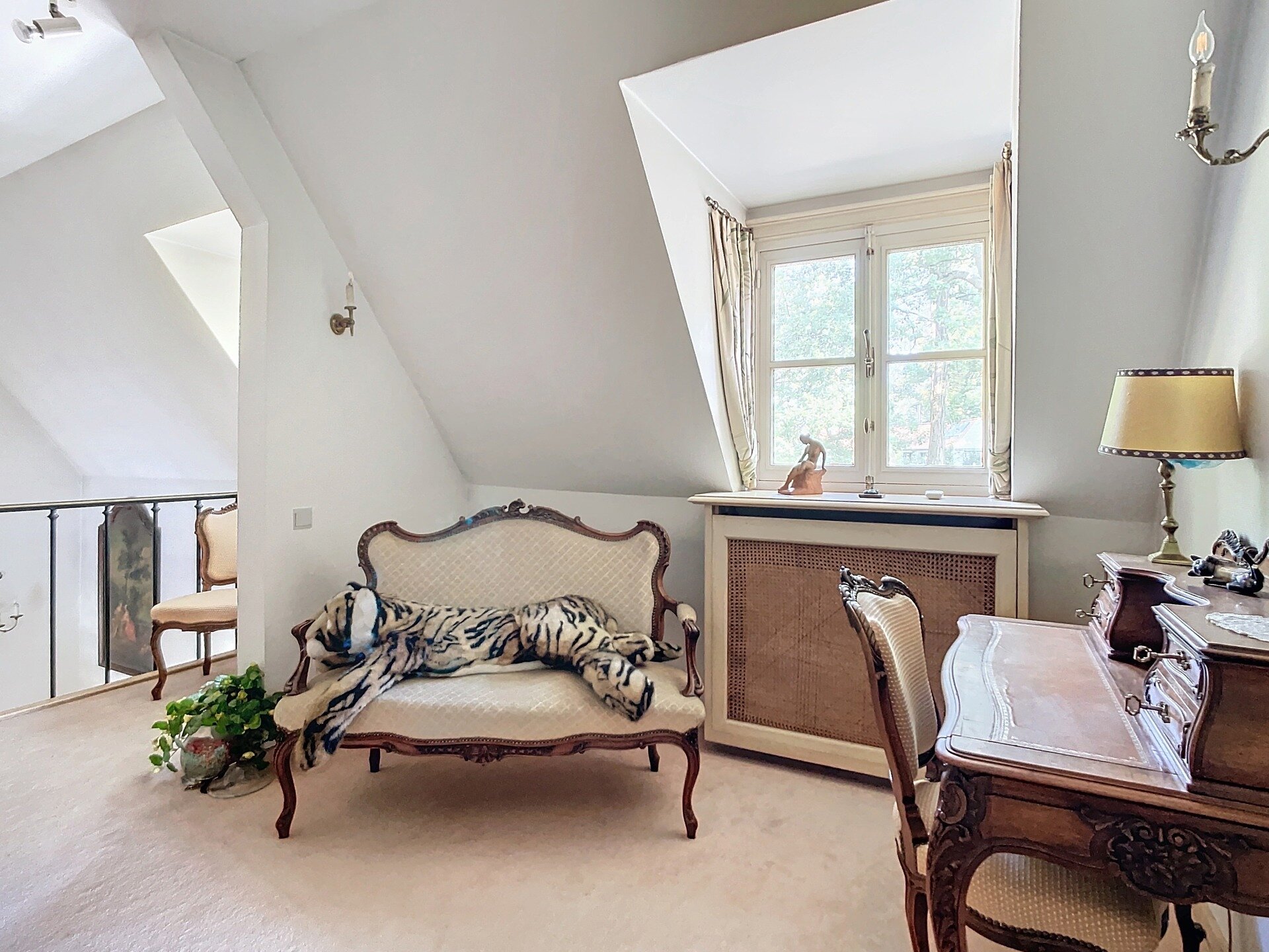 Casalina Real Estate and Sweet Home Properties present this magnificent villa for refurbishment with a total surface area of +/- 775 m², of which +/- 540 m² is livable. This property is located in the prestigious residential area of Bechet, within easy reach of the Forêt de Soignes, public transport and the Ravenstein Royal Golf Club. Built in 1979 on +/- 28.6 acres of land facing south-west, it is ideal for family life and receptions and is arranged as follows: Ground floor: large entrance hall, 2 lounges, dining room, spacious kitchen, each of these living rooms offers a view and direct access to the garden and swimming pool, an office and the possibility of creating a shower room in the adjoining room, storage room. 1st floor: 4 bedrooms, spacious studio that could be split to create additional bedrooms with terrace, dressing room, 3 bathrooms and sauna. Numerous cellars with additional shower room. Convertible attic. 3-car garage and outdoor parking for 4/5 cars. EPB D 304 kWh/m²/year. Free on deed. Information and surface areas are given for information only and are not contractually binding.