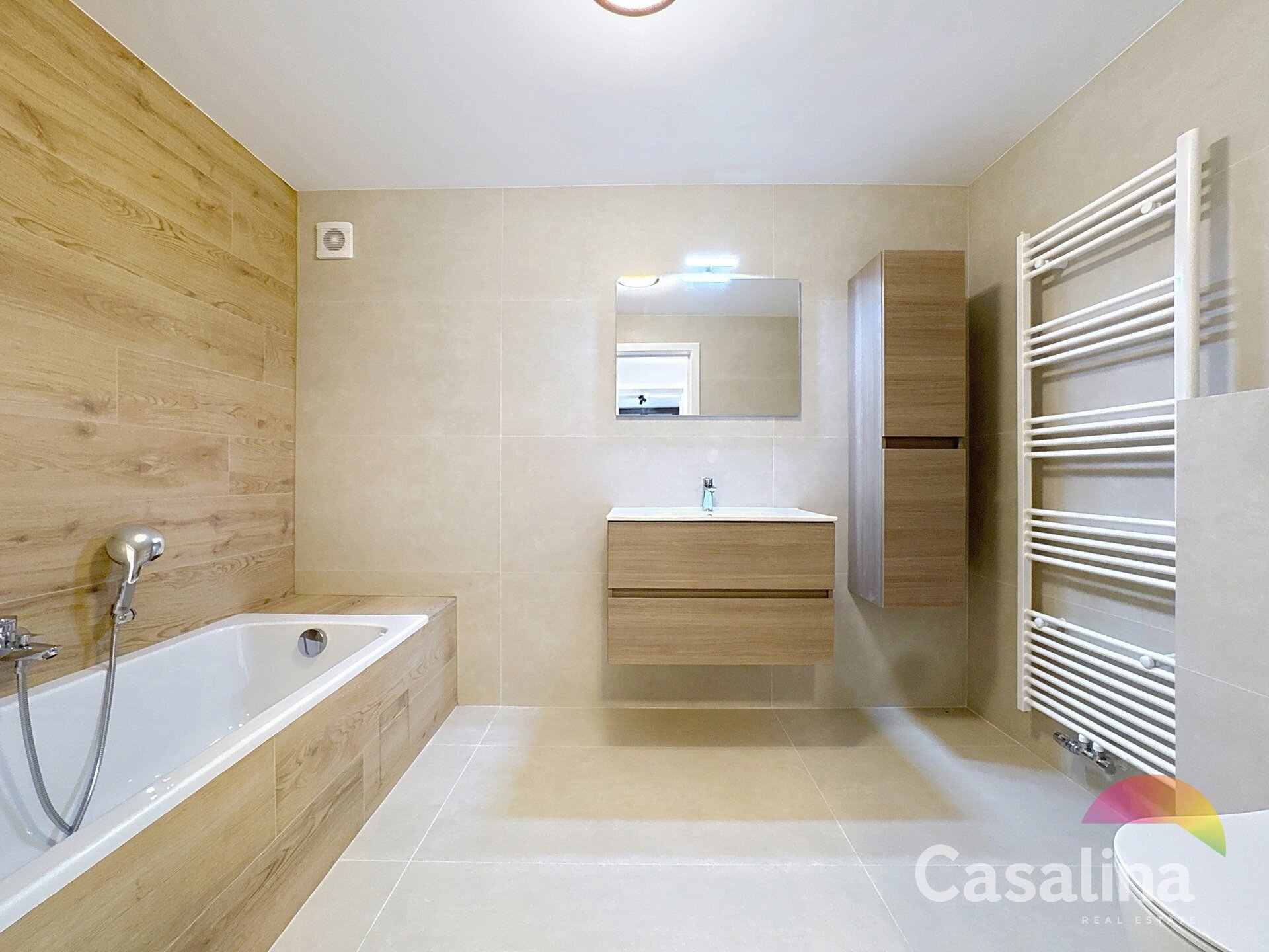 Casalina Real Estate is pleased to offer exclusively this spacious, fully renovated duplex apartment (souplex) of approx. 105 sqm (according to EPC), located on the ground floor, with a private terrace and garden. The location is ideal, close to shops, schools, public transport and the Terdelt sports center.