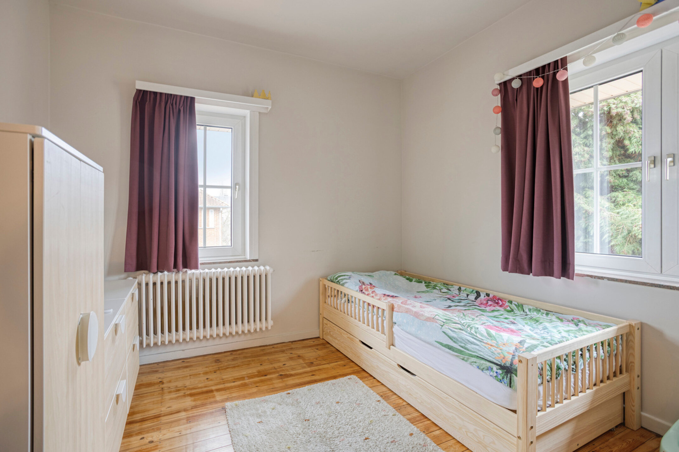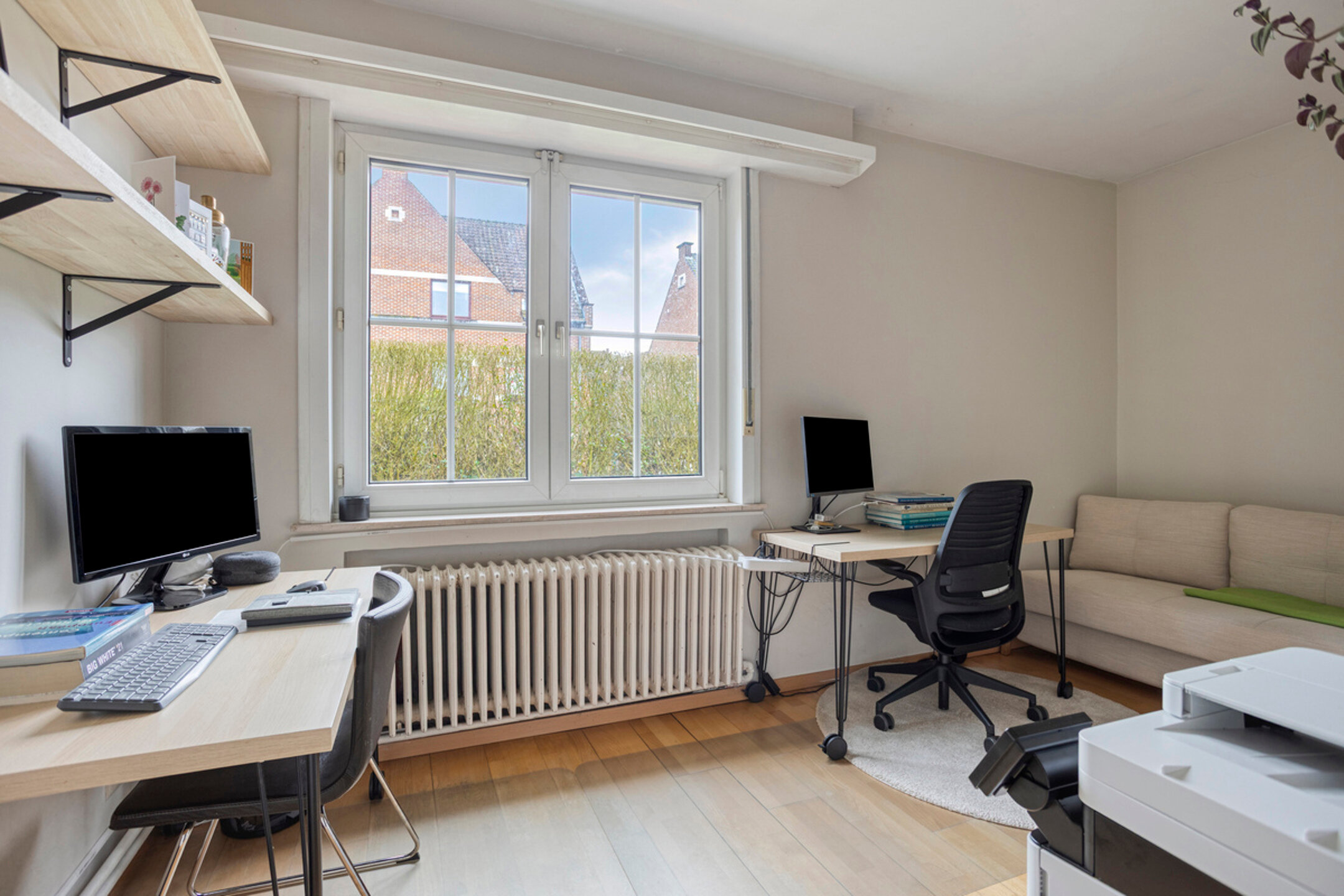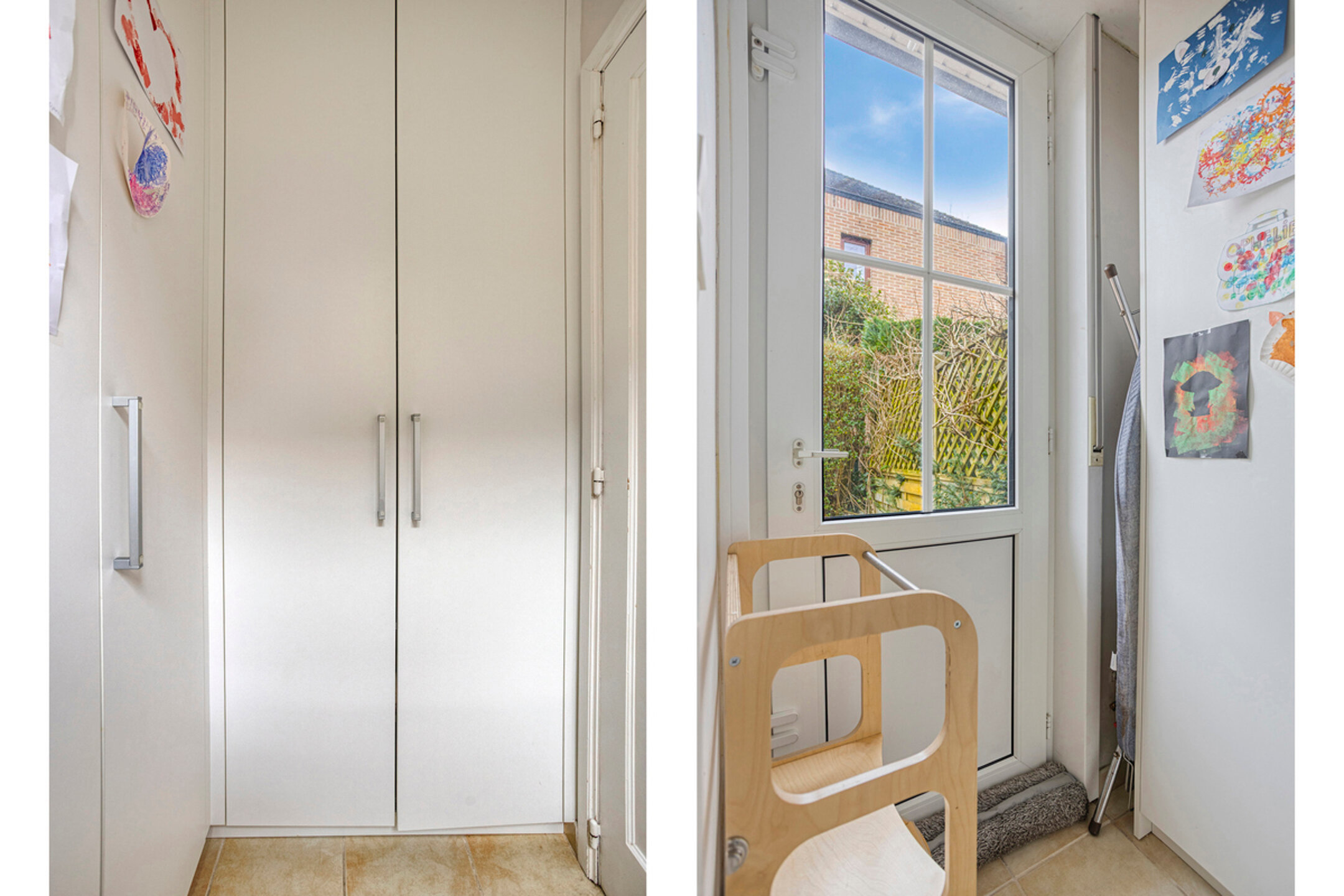 En entrant, vous êtes accueilli dans le hall d’entrée avec vestiaire et toilette séparée pour invités. De là, vous avez accès à la cave et au garage. Le hall mène au lumineux séjour, qui s’ouvre harmonieusement sur la cuisine. La cuisine est équipée d’armoires encastrées et d’une buanderie pratique avec raccordements pour machine à laver et sèche-linge. Depuis la cuisine, vous avez également un accès direct au jardin. Au rez-de-chaussée se trouve également une chambre supplémentaire de 11,25 m², actuellement aménagée en bureau, idéale pour le télétravail ou comme espace hobby.