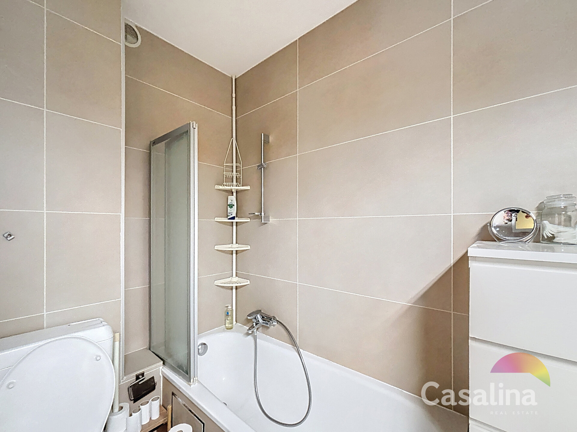 Beschrijving van het pand Bij het binnenkomen komt u in een inkomhal met ingebouwde kasten. De woonkamer geniet van aangename lichtinval en geeft rechtstreeks toegang tot de open keuken én het ruime hoekterras, ideaal om van de zon te genieten. De ingerichte open keuken sluit mooi aan op de leefruimte. Verder beschikt het appartement over twee slaapkamers, een badkamer met bad en toilet, en een apart toilet.