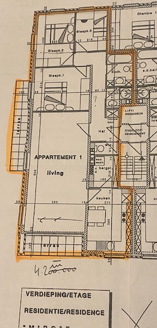 Casalina Real Estate stelt u met plezier dit ruime appartement van 111m² (volgens het EPC-rapport) in zeer goede staat voor, gelegen op de 2ᵉ verdieping van een goed onderhouden gebouw uit 1990 met lift.
