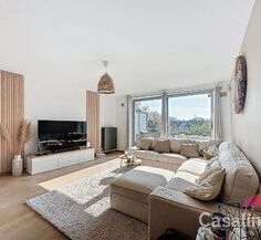 Indeling van het appartement: Het appartement bestaat uit een woonkamer van 34 m² met toegang tot een terras, een volledig uitgeruste keuken en een wasruimte. Op de verdieping: 2 slaapkamers van 19 en 14 m² met ingebouwde kasten onder het schuine dak, een badkamer met douche en ligbad. In de kelder: een kelder en een afgesloten garageplaats.